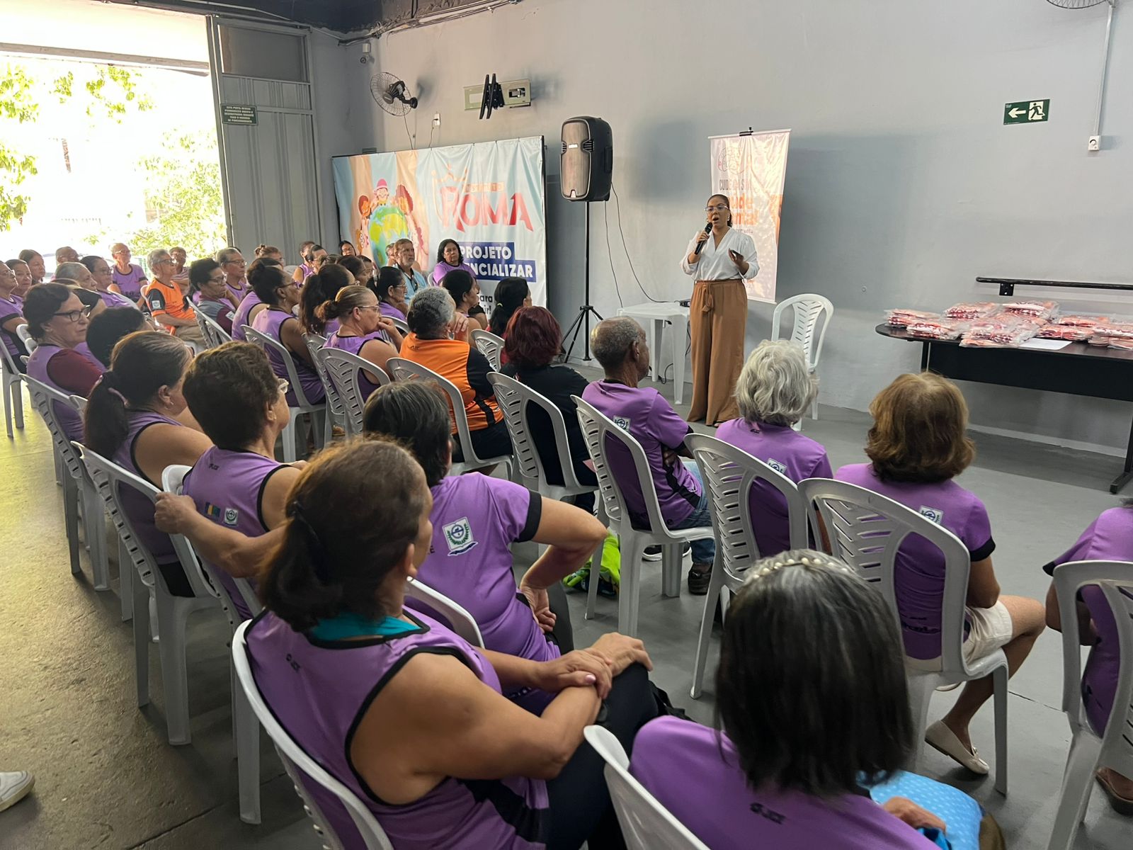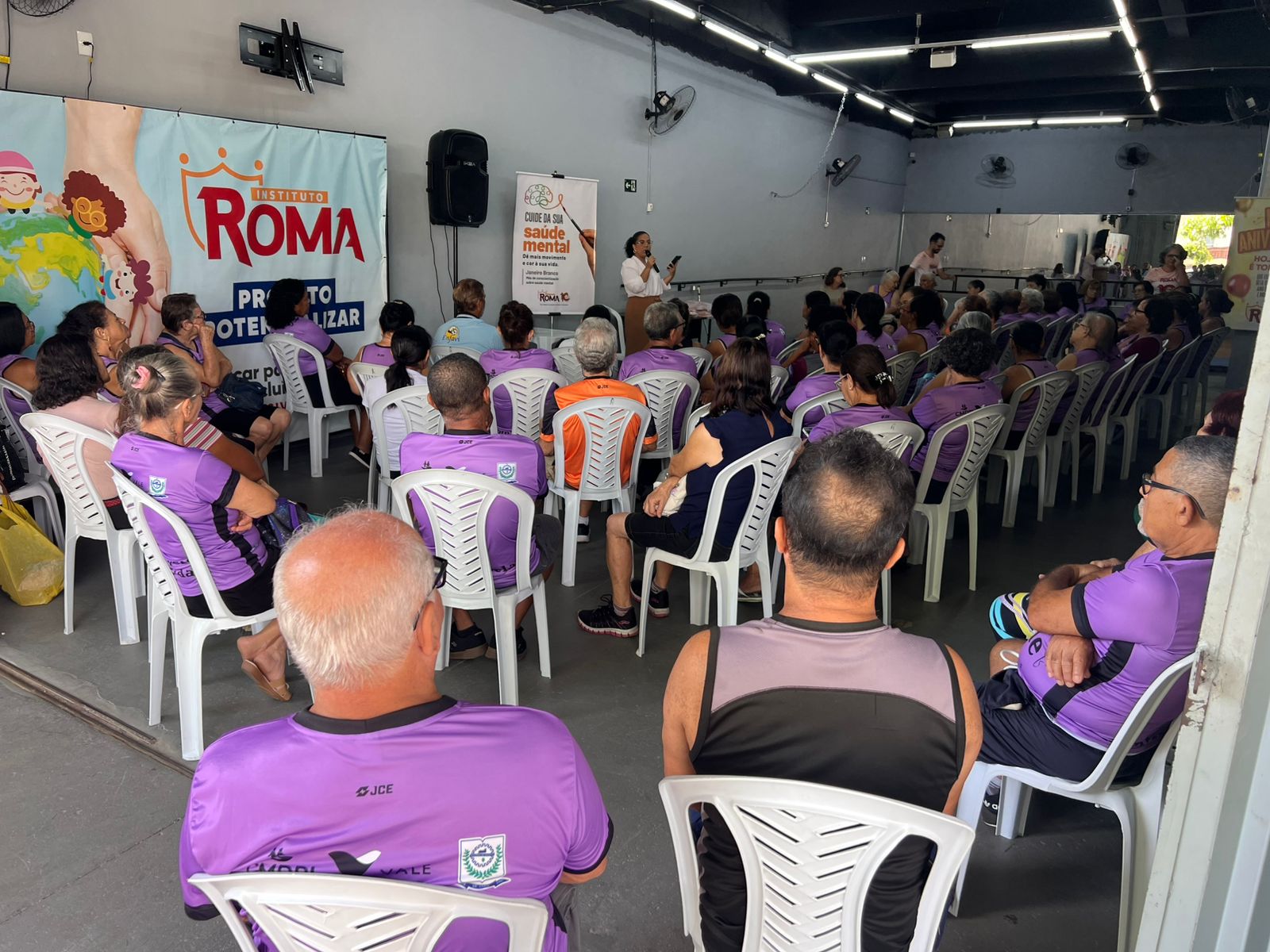 Além da palestra, o evento contou com aula ministrada pelo professor Gabriel e com a realização de atividades de saúde física, promovendo o bem-estar integral dos atendidos.