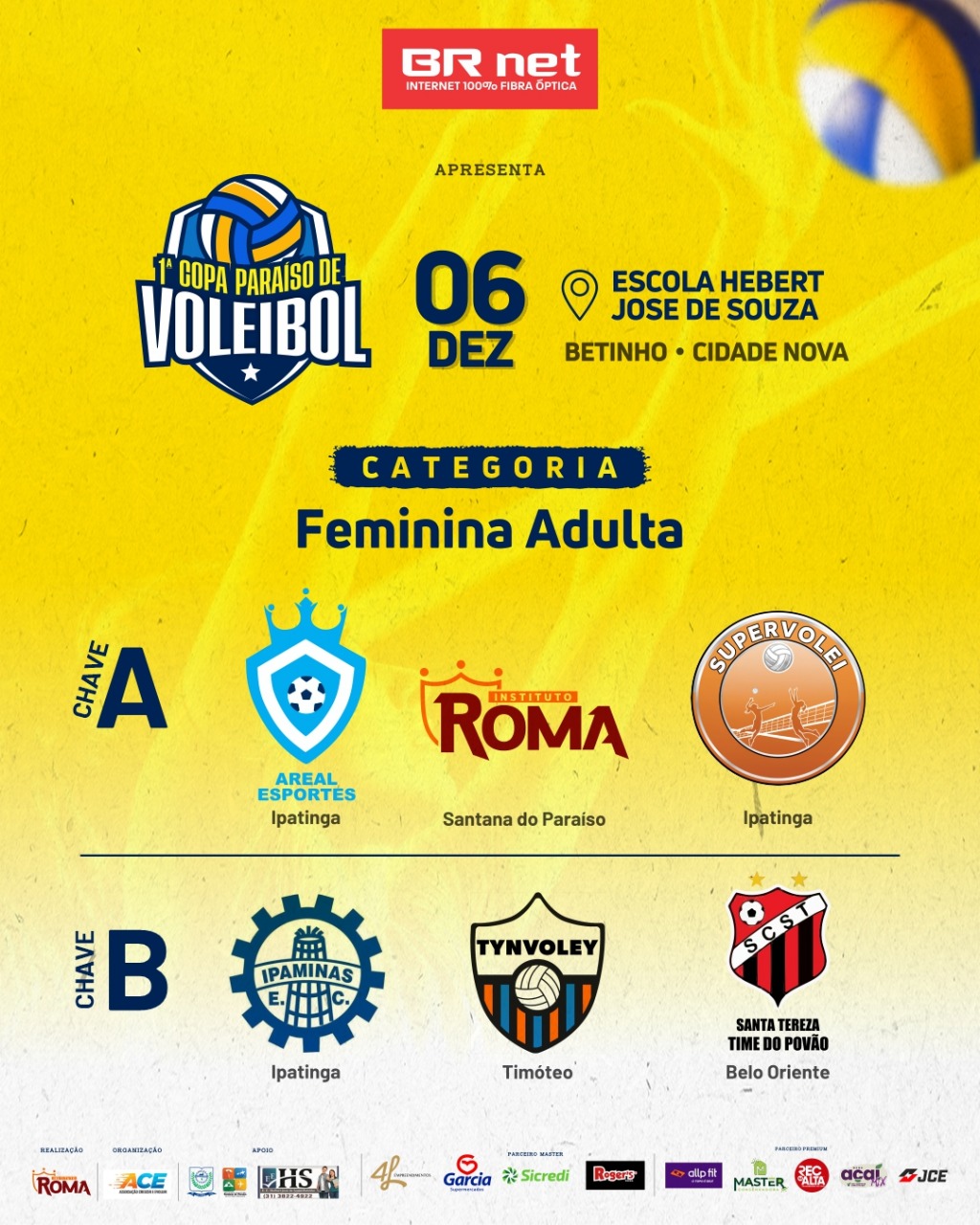 No último sábado, 29 de novembro de 2025, a Escola Municipal Herbert José de Souza - Betinho recebeu a primeira etapa da 1ª Copa Paraíso de Voleibol, com a disputa da categoria Feminino de Base, voltada para atletas de até 18 anos. O evento marcou um momento histórico para o esporte local e reuniu equipes de Santana do Paraíso, Ipatinga, Timóteo e Antônio Dias.